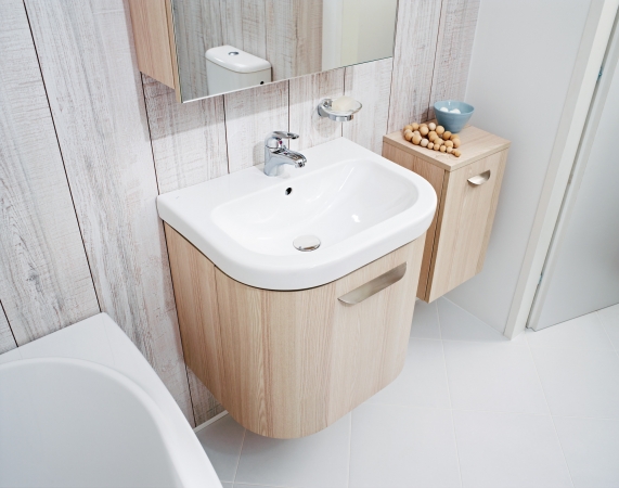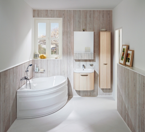 Preneste si kúsok prírody do svojej kúpeľne! Nová séria JIKA OLYMP Deep vsádza na neskonalo príjemné pocity aké vyvoláva dotyk hladkého dreva i nevtieravé tóny čisto skvejúcej sa bielej farby, dekoru sviežeho jaseňa i zlatého dubu, ktoré pohladia oči. Výrazné zaoblenie umývadlovej skrinky vytvára v kúpeľni solitér, ktorý je podobný vyrastenému velikánovi uprostred lesov.
