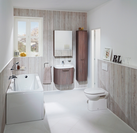 Krásny, ale nevšedný variant dekoru zlatého dubu nie je pre každého. Zaujme a osloví odvážlivcov, rovnako ako náročných milovníkov štýlu vintage. Farba ušľachtilého dreva dodáva kúpeľni teplo a eleganciu.