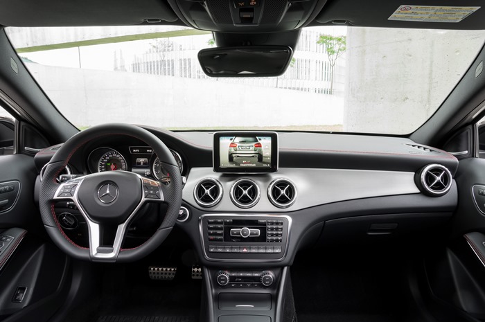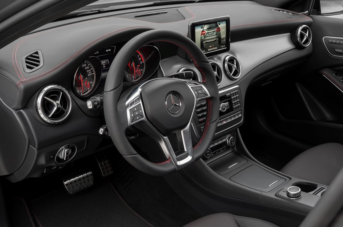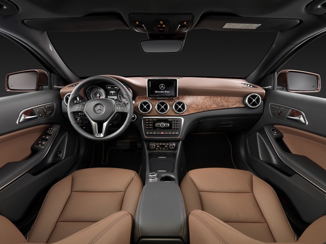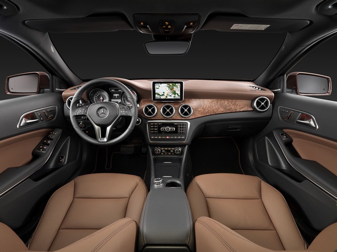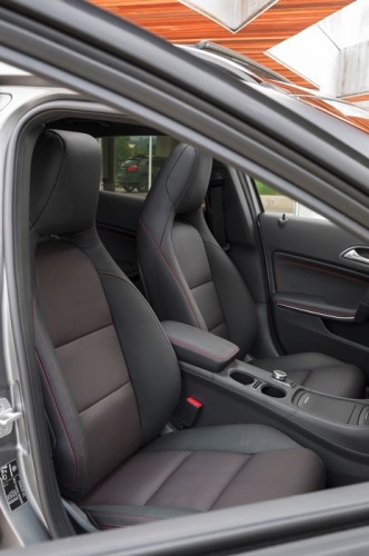 Ovládacie prvky zvláštnej výbavy „elektrické prestavenie sedadiel s pamäťou“, lemované galvanizovaným ozdobným rámikom, sú v GLA usporiadané typicky pre mercedesy na vnútornom obložení dverí – jedinečný atribút výrobku v tomto segmente. Vnútorné obloženie dverí je takisto veľmi starostlivo vyhotovené. Mäkké a matné plochy dôsledne siahajú od spodnej hrany bočných okien až po priečinok na dverách. Lakťová opierka dverí má v kombinácii s balíkmi výbavy vizuálne výraznú pochrómovanú ozdobnú lištu a na želanie je vybavená náladovým osvetlením.