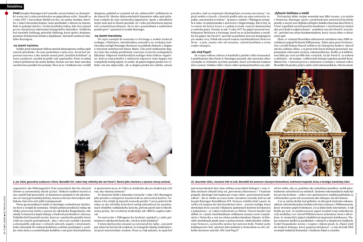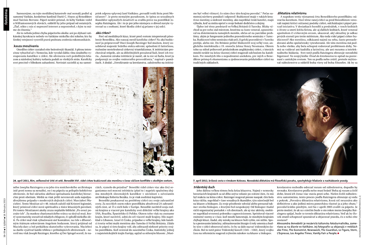 V tohtoročnej špeciálnej kategórii Vatikán získal časopis .týždeň dve ceny. Jednu za titulnú stranu s odchádzajúcim pápežom, ďalšiu za fototému s rovnakou tematikou. Aj v tejto kategórii spolu súťažili denníky s časopismi, ocenených ich bolo dovedna štrnásť, okrem slovenského časopisu aj denníky ako nemecký Bild, francúzsky Libération či talianska La Stampa.
