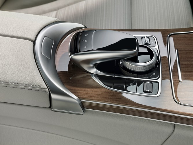 Pohľad nad stredovou konzolou priťahuje voľne stojaci centrálny displej s uhlopriečkou 17,78 centimetrov (7 palcov) umiestnený v strede alebo v prípade vybavenia systémom COMAND Online, s uhlopriečkou 21,33 centimetrov (8,4 palca).