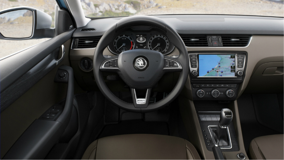 Prahy a lemy blatníkov chránia čierne plastové kryty. Podobne sú čiernymi ochrannými lištami chránené aj boky dverí. Svetlá výška je oproti bežnému modelu Octavia zväčšená o 33 milimetrov. Súčasťou sériovej výbavy sú atraktívne sedemnásťpalcové kolesá z ľahkých zliatin. V interiéri ponúkne kožou potiahnutý multifunkčný trojramenný volant a atraktívne prvky v dizajne Scout.