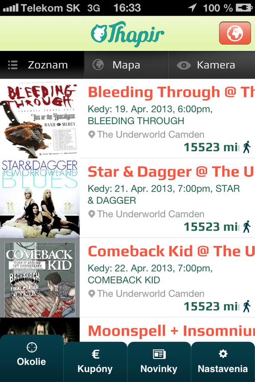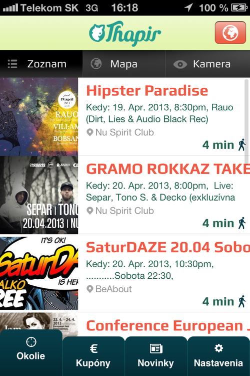Sprevádza udalosťami v okolí nielen v slovenských, ale aj európskych, či svetových veľkomestách. Okrem podrobných informácií o akciách umožňuje aj navigáciu k miestu konania, či vyhľadávania udalostí na základe zadanej adresy. V súčasnosti je k dispozícii verzia pre operačný systém iOS.