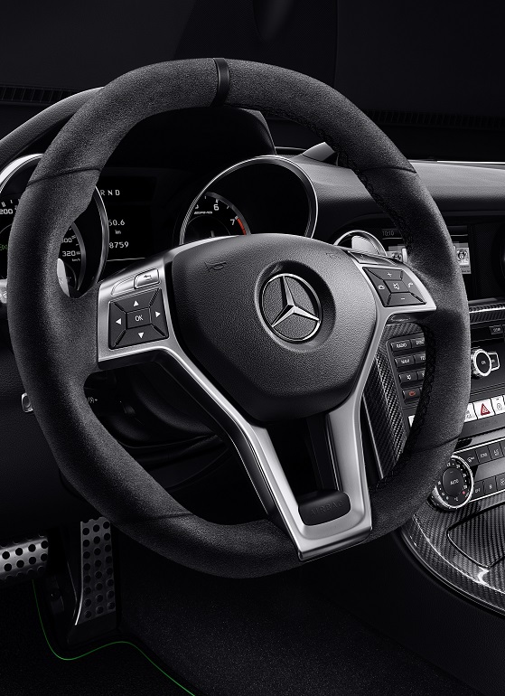 Interiér bol obohatený o vyberané štýlové prvky ako športové sedadlá AMG v koži napa čierna s lemovaním v limetkovej zelenej farbe a karbónom zvýraznené opierky hlavy. Súčasťou exkluzívneho programu sú aj volant AMG Performance v Alcantare® s čiernou značkou na 12. hodine, ozdobné prvky AMG z karbónu a rohože AMG s lemovaním v limetkovej zelenej farbe. Okrem vyhrievania sedadiel a systému vyhrievania priestoru okolo hlavy AIRSCARF zvyšuje komfort aj balík pamäte.