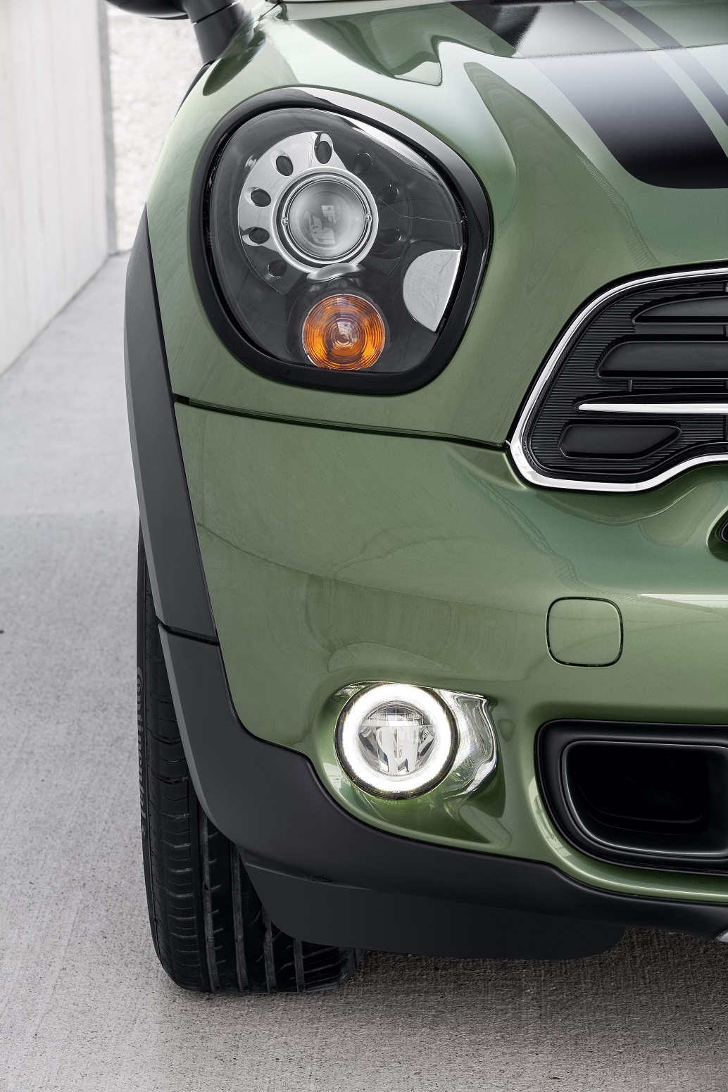 Ďalšou novinkou sú LED hmlovky s parkovacími a dennými svetlami  s technológiou LED – po prvýkrát dostupné v doplnkovej výbave.  Produkujú intenzívne biele svetlo, silnejšie než konvenčný typ  predných svetiel. Štruktúra ich zdrojov svetla zároveň vytvára  nezameniteľne nápadný dizajn prednej časti MINI Countryman. Na  zlepšenie viditeľnosti v hmle sa aktivujú tri LED diódy usporiadané  horizontálne v strede, vyžarujúce však svetlo na celú plochu jednotky.  Denné svetlá majú podobu prstencov z 15 LED diód po obvode. Pri  zapnutí parkovacích svetiel sa aktivuje iba 5 LED diód v hornej  tretine svietiaceho prstenca.
