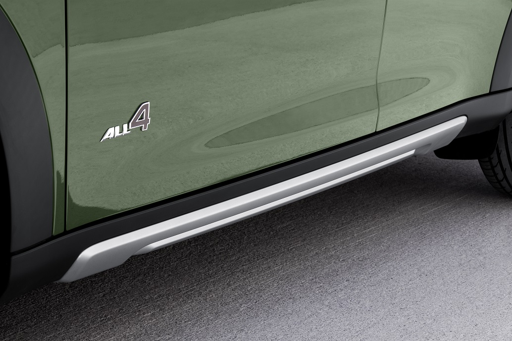 Robustný a všestranný charakter MINI Countryman je zvýraznený  ochrannými prvkami pod dolnou časťou karosérie vpredu, vzadu aj pod  prahmi, ktoré má teraz v štandardnej výbave každý variant s pohonom  všetkých kolies ALL4, okrem modelu John Cooper Works. Pre modely  s pohonom prednej nápravy sú ochranné prvky v ponuke v rámci  doplnkovej výbavy.