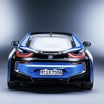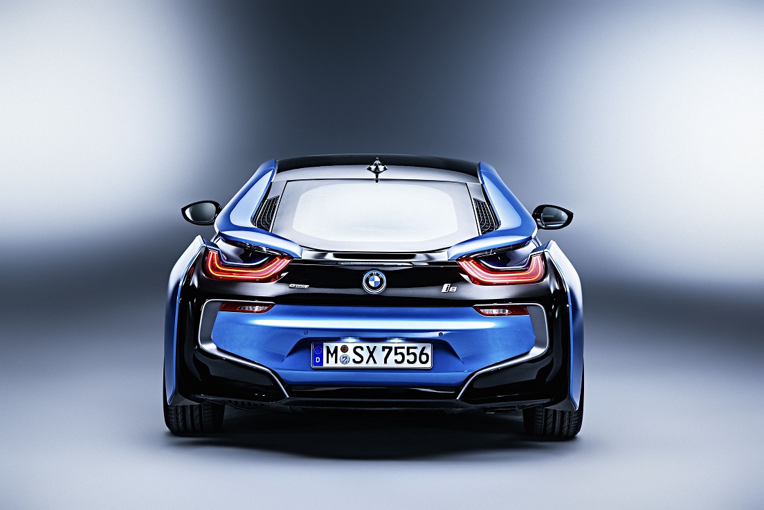 Nízky vzhľad zadných partií a ich horizontálne línie, vizuálne zvýrazňujúce šírku, sú ďalším viditeľným dôkazom dynamického potenciálu BMW i8. Zadnú časť ohraničujú mohutne klenuté lemy zadných blatníkov. Zvažujúce sa zadné okno sa otvára doširoka a sprístupňuje úložný priestor, umiestnený pod ním. Zadné svetlá, odrazky a zadný difúzor tvoria spoločnú vizuálnu jednotku, ktorá zvýrazňuje silu osobnosti vozidla. Podobne ako predné svetlá, aj dômyselne členené zadné svetelné jednotky tvoria tvar písmena „U“, typický pre BMW i. Smerovky sú začlenené do vyústenia strechy nad zadnými svetlami. Všetky svetlá BMW i8 majú štandardne technológiu LED.