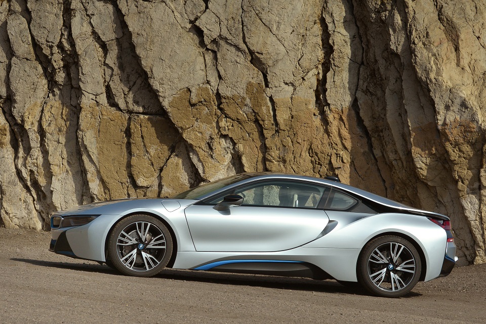Štruktúra prekrývajúcich a prelínajúcich sa povrchov, zvýraznená aj farebnou schémou vozidla, takisto prispieva k nezameniteľnému zjavu BMW i8. Princíp vrstvenia umožnil dať aerodynamickým prvkom progresívny vzhľad, výrazne klenuté lemy blatníkov pre zmenu priťahujú pozornosť k širokým rozchodom kolies BMW i8. Kompaktná konštrukcia, typická tak pre spaľovací, ako aj pre elektrický motor, umožnila dosiahnuť nízky dizajn prednej aj zadnej časti vozidla a aj týmto spôsobom zvýrazniť šírku jeho bokov. Krídlové dvere, otvárajúce sa smerom dohora a dopredu, pridávajú dizajnu BMW i8 ďalšiu porciu sofistikovanosti.