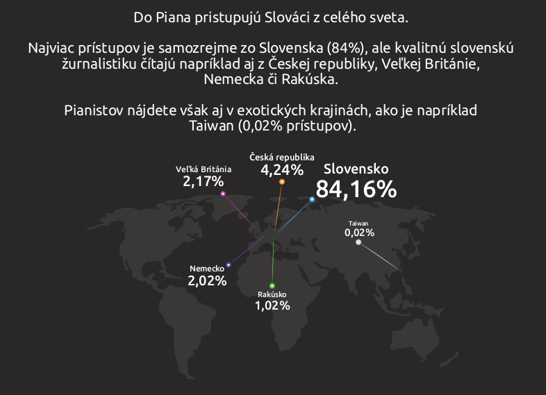 Predplatiteľom Piana jeho prevádzkovateľ včera v rozposlaných e-mailoch ďakuje, že podporujú tvorbu kvalitného obsahu. Podľa Králika ich systém výrazne prispel na Slovensku k tomu, že si čitatelia začínajú zvykať na fakt, že informácie na webe nie sú zadarmo. „V zahraničí je trend spoplatňovania webov citeľnejší, rovnaký vývoj však čaká aj Slovensko,“ predpovedá country manažér spoločnosti Piano Slovakia pre Slovensko.