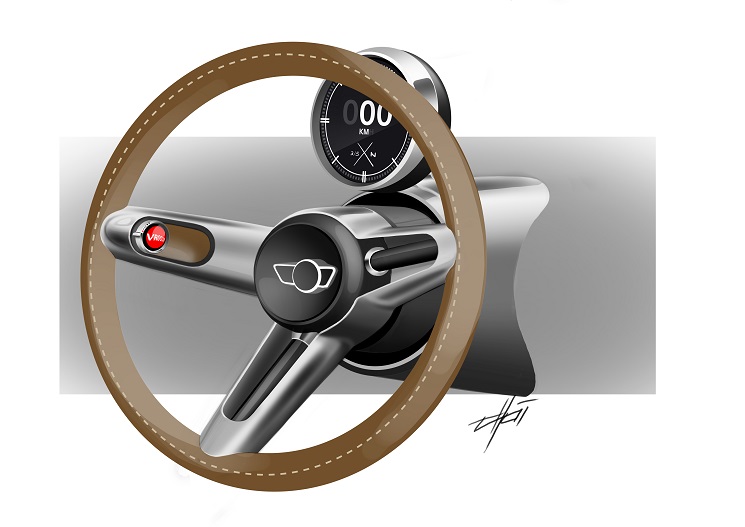 Centrálny ukazovateľ uprostred prístrojovej dosky podčiarkuje aktuálny dizajnový jazyk značky MINI a rozširuje výbavu štúdie MINI Superleggera™ Vision o dotykový displej a dva kruhové ukazovatele uprostred kovových kruhov. Okrem analógových hodín sa v interiéri nachádza aj videokamera. Je umiestnená medzi sedadlom vodiča a spolujazdca a jej úlohou je pre večnosť zachytiť neopakovateľné momenty z ciest.