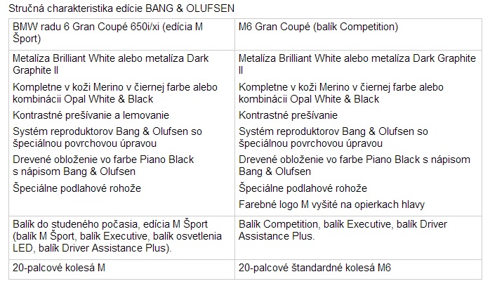 Zákazníci túžiaci po ešte športovejšom pôžitku z jazdy môžu siahnuť po jednom z desiatich vozidiel BMW M6 Gran Coupé edície BANG & OLUFSEN vybavených balíkom Competition, ktorý výkon najsilnejšieho motora, aký kedy bol do sériového vozidla z dielne BMW osadený, ešte zvýši z 560 na 575 konských síl.