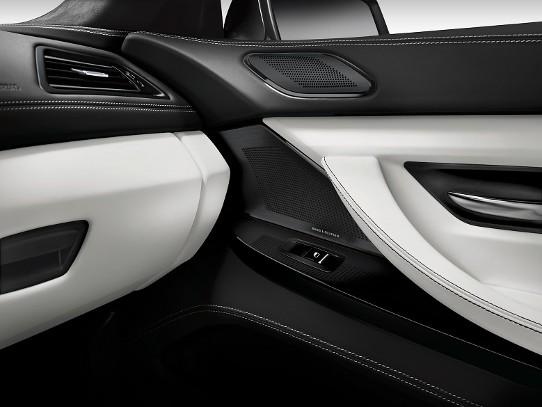 Interiérové prvky sú potiahnuté tou najjemnejšou, ručne spracovanou kožou Merino v čiernej farbe alebo v opálovej čierno-bielej kombinácii, v obidvoch prípadoch s kontrastným prešívaním/lemovaním. Tento dizajnérsky motív dopĺňa drevené obloženie vo farbe Piano Black s nápisom BANG & OLUFSEN na kryte predného držiaka na pohár a špeciálne navrhnutých podlahových rohožiach. Model M6 Gran Coupé navyše zdobí jedinečné logo M v typických farbách vyšité na opierkach hlavy predných sedadiel.