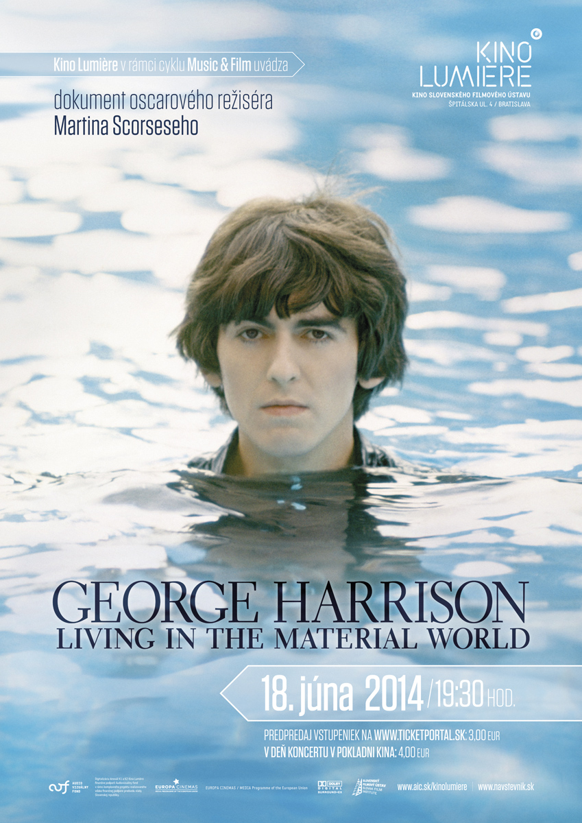 Kino Lumière vo svojom cykle Music & Film pripravilo v júni dvojdielny dokument o sólovom gitaristovi a spevákovi kapely The Beatles George Harrison: Living in the Material World. S použitím doteraz nezverejnených fotografií a záberov ho nakrútil oscarový režisér Martin Scorsese. Projekcia filmu sa uskutoční v stredu 18. júna o 19.30 hod. a uvedie ju dramaturg cyklu Miro Ulman.