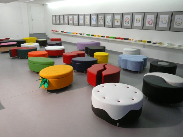 Výstava architekta a dizajnéra Dušana Voštenáka - Taburetky-7Jednotlivé série s názvami ako Zelovoc, Tutti-Fruti, Bufet, Príroda, Dovolenka, Hudba, Pop, Zverinec či Láska vznikali v priebehu posledného roka ako program individuálnych objektov Banal Designu, ktorý nenájdete na celom svete a každý si vyberie svoj kúsok ako autorský originál podpísaný autorom.