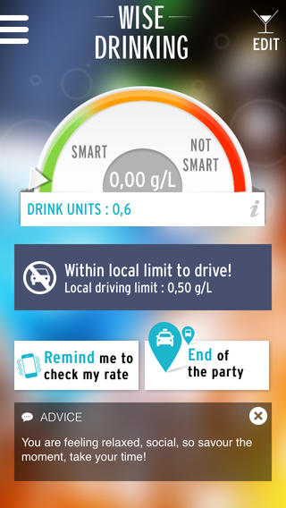 Spotrebitelia si vďaka tejto aplikácii môžu analyzovať a vyhodnotiť vlastnú konzumáciu alkoholu – appka rozlišuje typy alkoholických nápojov (víno, tvrdý alkohol a ďalšie), množstvo skonzumovaného alkoholu, váhu, vek a pohlavie konzumenta.