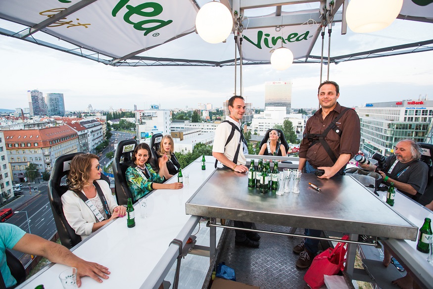 Zariadenie pozostávajúce zo žeriavu a špeciálne upraveného stola na pohodlné vychutnávanie si zážitku z krásneho výhľadu i osviežujúceho nápoja je umiestnený na parkovisku pri bratislavskom nákupnom centre Eurovea.