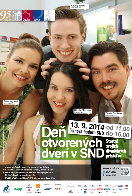 Slovenské národné divadlo (SND) už tradične na druhú septembrovú sobotu (13.9.) pripravuje rodinný event Deň otvorených dverí (DOD) v novej budove SND na Pribinovej ulici. Kampaň sa fotografovala mobilným telefónom Nokia Lumia 1020, ktorý zapožičala spoločnosť Orange Slovensko, a.s. – partner SND.