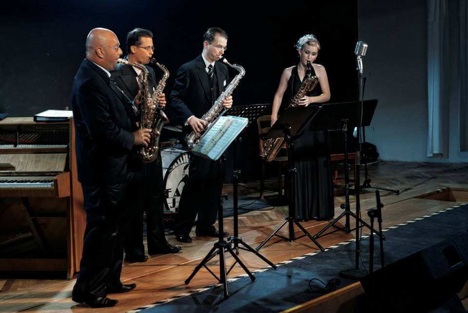 Či už znie ako sólový nástroj alebo trebárs aj v orchestri, jeho farba je natoľko typická, príjemne „jazzovo kovová“ a pritom vždy dostatočne pohyblivá a mäkká, že je až lahôdkou ho počúvať. Tentoraz sme mali tento zvuk štvornásobne dopriaty – dva altové saxofóny, jeden tenor a pôvabne krehká Frederika Babuliaková na mohutnom barytónovom saxofóne tvorila nielen vizuálny kontrast voči presile mužského tria, ale najmä celé teleso zvukovo drsnou basovou linkou rytmicky držala pohromade.