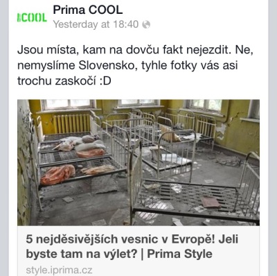 Ľudia z Rádia Expres na Facebooku objavili príspevok, ktorý ich tak trochu zaskočil. Česká stanica PRIMA COOL na svojej stránke zverejnila článok 5 najdesivejších dedín v Európe. Sú naozaj strašidelné. Na Facebooku sa k tomuto článku objavil popis “Sú miesta, na ktoré nechoďte na dovolenku. Nie, nemyslíme tým Slovensko.” Rádio Expres sa naň rozhodlo zareagovať.