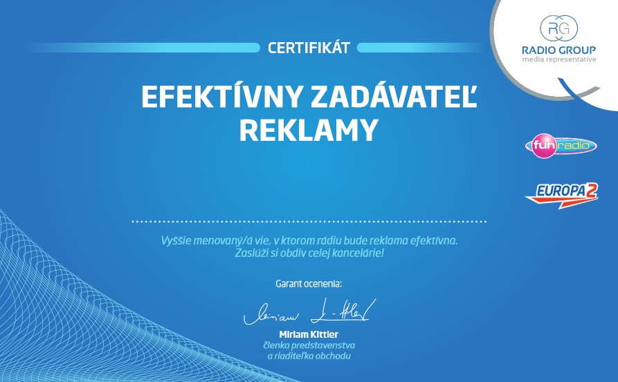 Radio Group certifikat - Uspesny zadavatel reklamy