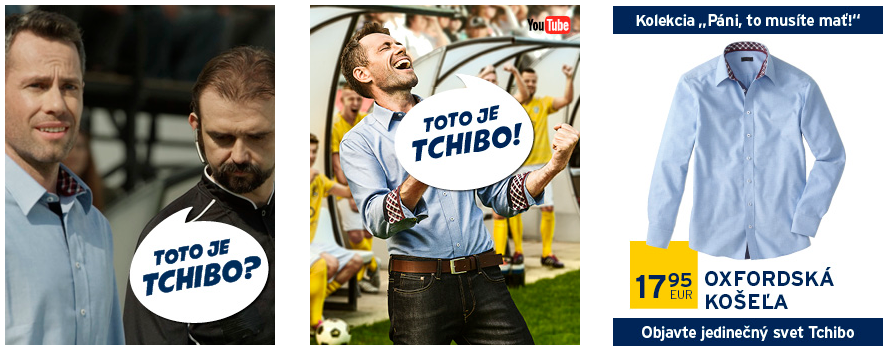 Celá kampaň je postavená na jednoduchom dialógu, po ktorom prichádza prekvapivé odhalenie skutočného produktu Tchibo – či už ide o rifle, LED klipsne na behanie alebo košeľa.