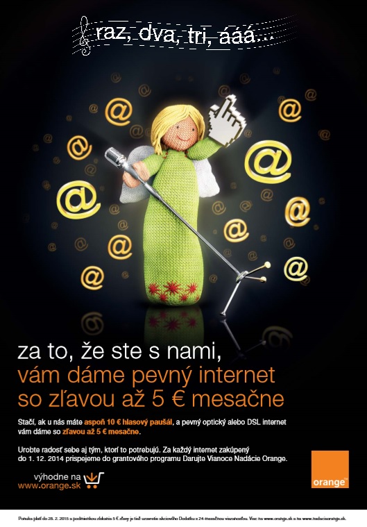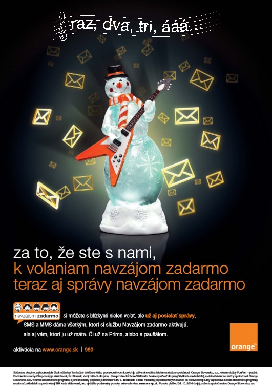 „Vychádzali sme z toho, že operátori (a nielen oni) zahlcujú média vianočnými klišé už od októbra, čo dlhodobo ľuďom prekáža. „Nové ponuky? Fajn!…ale s darčekami, zvončekami, Santa Klausom a vyzdobenými stromčekami nám ešte chvíľu dajte pokoj!“ Takto to ľudia cítia a preto sme hľadali cestu, ako im ponuku od Orangeu odprezentovať tak, aby ich zaujala a štýl komunikácie ich neprivádzal do zúrivosti. Takže ich príjemne zabávajme, venujme im pekný song a zároveň im povedzme, čo pre nich tento rok Orange má. A špeciálne pre tých svojich. Za to, že sú v Orangei.“
