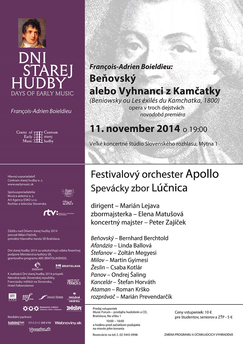 Gróf Móric Beňovský bude 11. novembra v Koncertnej sieni (Štúdio 1) Slovenského rozhlasu na Mýtnej ulici v Bratislave – v úlohe hlavného protagonistu novodobej premiéry opery Beňovský, alebo Vyhnanci z Kamčatky od popredného francúzskeho skladateľa porevolučnej, napoleonskej doby z prelomu 18. a 19. storočia Françoisa-Adriena Boildieua, ktorej premiéra sa konala v Paríži v roku 1800.