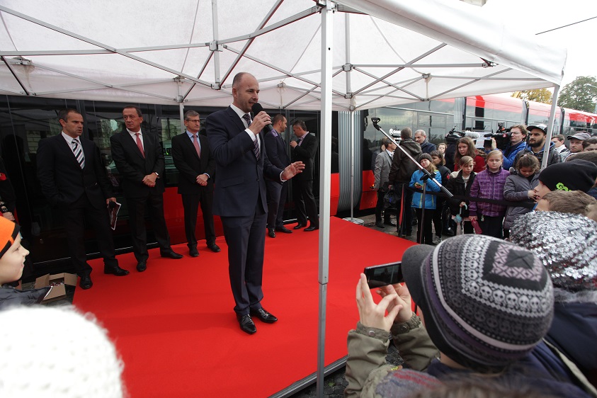 Ing. Ľubomír Belfi informoval o modernizácii vozidlového parku, následne sa prítomným aj médiám prihovoril minister dopravy, výstavby a regionálneho rozvoja SR Ján Počiatek. Na brífingu nechýbal ani Dušan Chrenek, zástupca Európskej komisie na Slovensku a samozrejme dodávateľ – generálny riaditeľ spoločnosti Škoda Transportation, a.s. Josef Bernard.