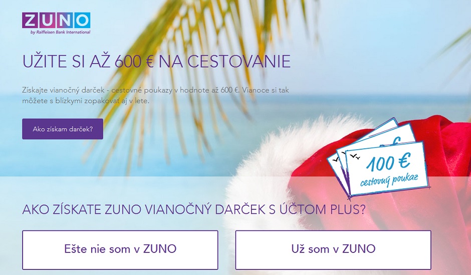 Online banka Zuno, jediná bez kamenných pobočiek na Slovensku a v Česku, prichádza s vianočnou kampaňou nazvanou Raz do roka je málo. Starým a novým klientom ponúka cestovné kupóny v hodnote 100 eur, ktoré môžu využiť v priebehu roka v hoteloch po celej Európe.
