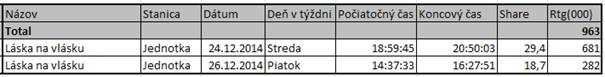 Lásku na vlásku si počas premiérového a reprízového vysielanie na Jednotke pozrel takmer jeden milión divákov (skupina 12+). Počas oboch vysielaní bola jednotkou na trhu. Premiérové vysielanie bolo zároveň najsledovanejším vianočným programom na Jednotke za posledných 10 rokov (druhým najsledovanejším od spustenia peoplemetrových meraní).