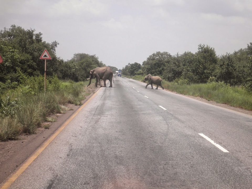 Čo sme však túžili vidieť najviac bolo stádo slonov. V parku sa nám ich nepodarilo vidieť, z čoho sme boli smutní. Ale Boh nám pripravil cestou naspäť jedno veľké prekvapenie. Po 30 kilometrovej hlavnej ceste, ktorá vedie cez park, sa začalo čosi veľké predierať z kríkov. Julko hovorí Bernardovi: Stop, niečo ide cez cestu. Áno, boli to slony, respektíve krásna slonia rodinka. Prechádzali pomaly, a zastavili sa pohľadom pri nás, akoby nám odovzdali pozdrav Zhora, že posiela nás váš Boh.