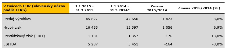 Pozn.: všetky výsledkové hodnoty sú prepočítané z PLN do EUR priemerným kurzom za obdobie 1. 1. 2015 – 31. 3. 2015 (1 EUR = 4,1489 PLN). zdroj: Kofola