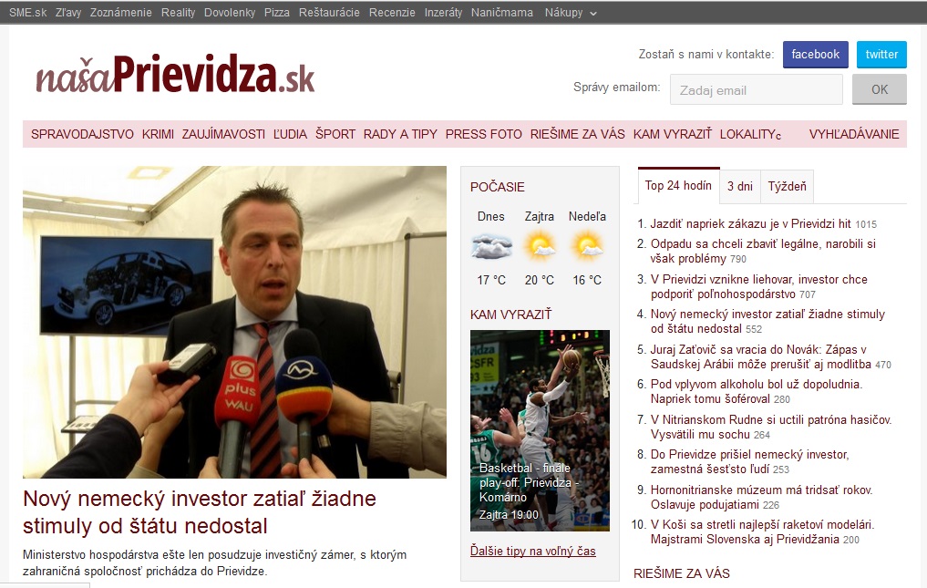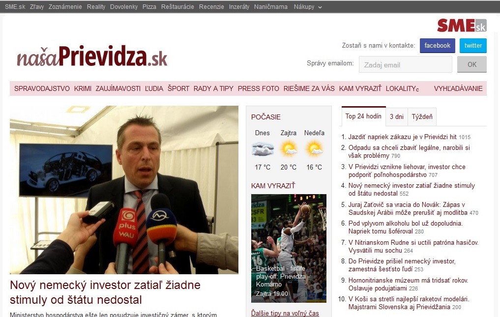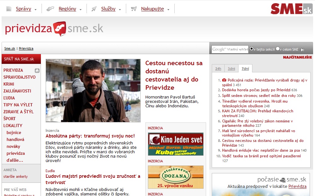 A pozrite sa ako vyzeral web Prievidza.SME.sk predtým: