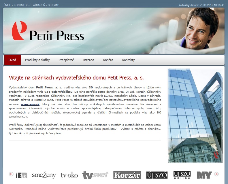 V polovici júna inovovalo vydavateľstvo Petit Press, a.s. svoj firemný web. Redizajnovaná stránka poskytuje prehľadnejšie štruktúrované informácie o spoločnosti, jej médiách i činnostiach – od vydavateľských, cez tlačiarenské až po reklamné služby a nielen to, nový web je dizajnovo svieži a viac korešponduje so súčasnými trendmi firemnej online prezentácie.