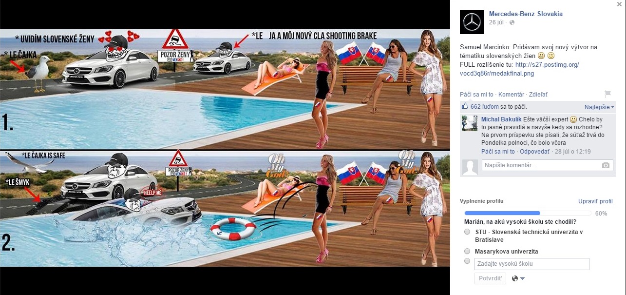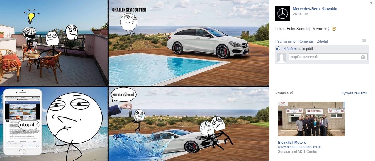 Fanúšikova značky Mercedes-Benz na Slovensku nedávno na facebooku riadne prevetrali marketingové a PR oddelenie spoločnosti Mercedes-Benz Slovakia.