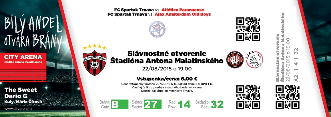 Trnavská športová City Arena – Štadión Antona Malatinského zažije v sobotu 22. augusta od 19-tej hod. veľkolepé otvorenie. Okrem starých pánov z Ajax Amsterdam Old Boys a legiend trnavského Spartaka privíta domáci prvoligový Spartak Trnava o 20:30 hod. brazílsky Atlético Paranaense.