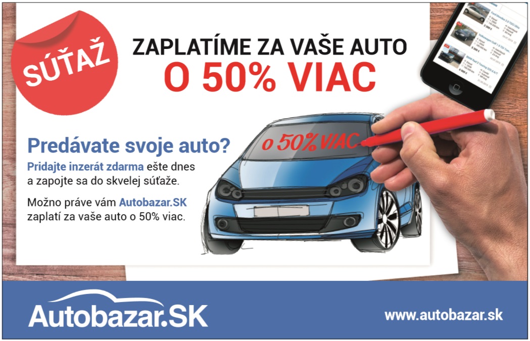 Autobazar.sk spustil pred časom svoju kampaň s názvom “Dáme ti za tvoje auto o 50 % viac”, ktorej cieľom je zaplatiť jednému z inzerujúcich o 50 % vyššiu hodnotu auta.