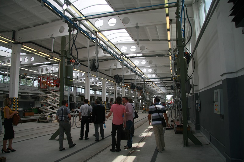 Po porade sa delegácia presunula do vozovne Jurajov Dvor, kde v súčasnosti prebiehajú finálne práce na modernizácii jednotlivých objektov. Návšteva si prezrela skolaudované autobusové haly, nové priestory Ľahkej údržby trolejbusov, Ľahkej údržby električiek a samozrejme nové vozidlá, nielen trolejbusy, ktorých bude už v októbri spolu 120, čím sa kompletne obnoví celý vozidlový park trolejbusov, ale aj električky, ktorých bude 60 kusov v roku 2016.