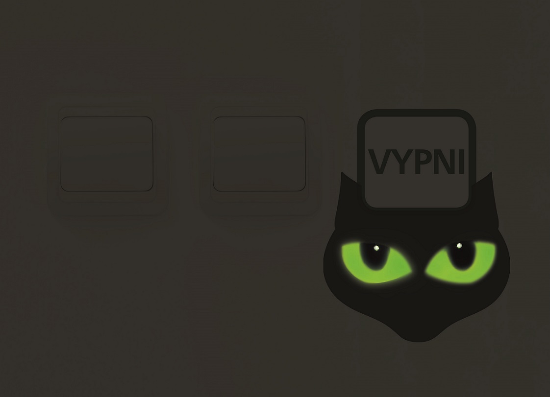 Ak zamestnanec zabudne pri odchode z miestnosti zhasnúť svetlo, pripomenie mu to fosforeskujúca nálepka mačky Pandory, ktorej v tme zasvietia oči: