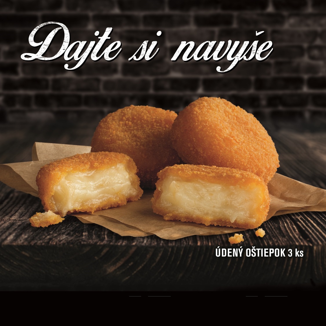 Ku burgeru Maestro Oštiepok sa hodia Farmárske zemiakové hranolčeky s omáčkou De Luxe s pažítkou. No pre všetkých, ktorí by sa rozkrájali pre Slovensko, sa rozkrájal oštiepok aj do samostatnej ponuky, ideálnej ako doplnok navyše k menu. V balení zákazníci dostanú tri kúsky fritovaného údeného oštiepku. Napíšte nám do komentárov pod článok, čo vám najviac chutí.