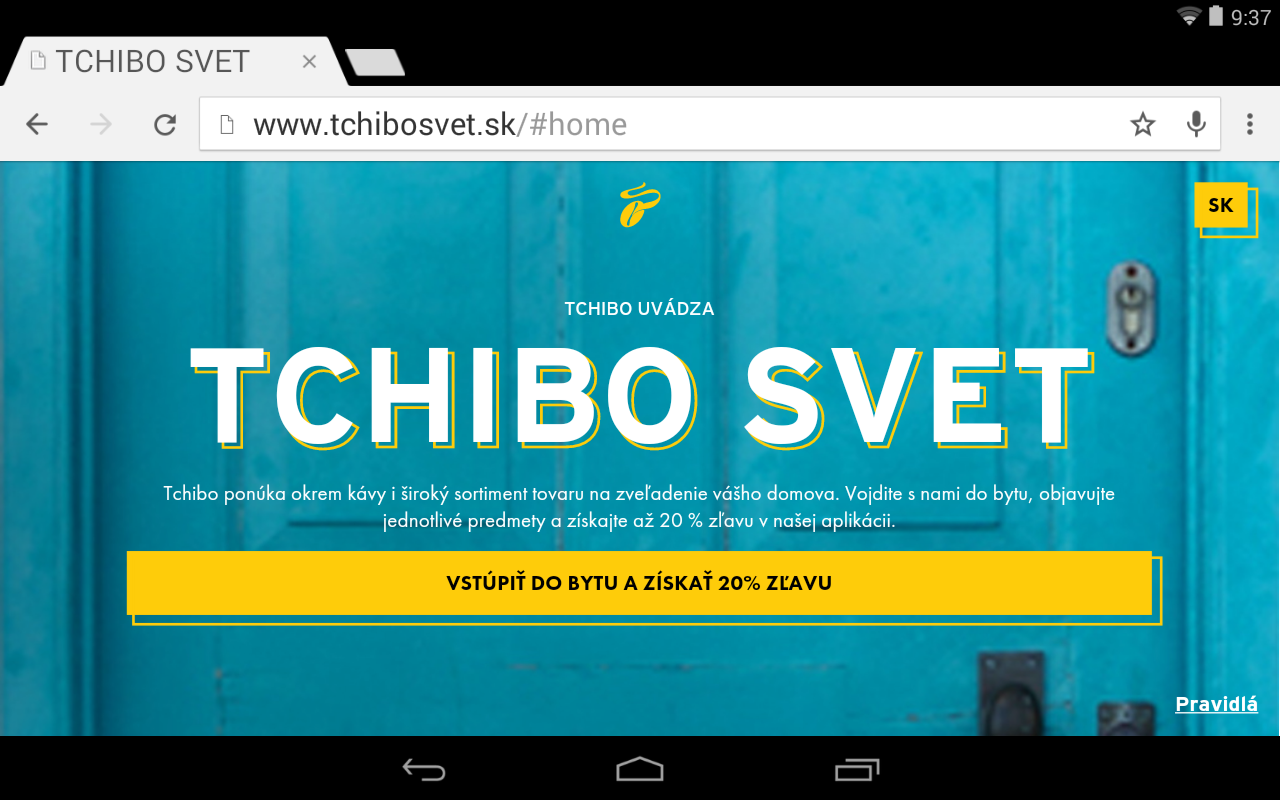 Spoločnosť Tchibo Slovensko inovatívne a hravou formou komunikuje svoju ponuku akciových produktov. Prostredníctvom reklamnej agentúry Zaraguza pre svojich zákazníkov pripravila mobilnú aplikáciu s panaramatickou hrou určenou pre smartfóny a tablety. Zákazníci si môžu vysúťažiť zľavu až do výšky -20% na produkty Tchibo.