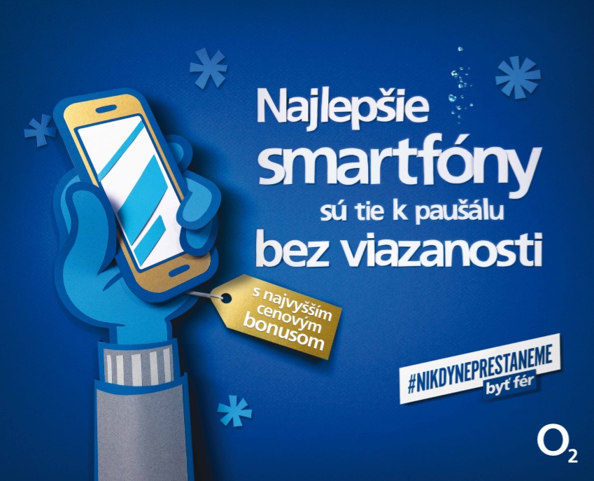 Spoločnosť O2 dnes štartuje vianočnú kampaň, opäť bez Vianoc. V spotoch komunikuje paušál O2 bez viazanosti a k nemu telefóny za výhodnú cenu. Nasadila hneď tri spoty, dva produktové a jeden imidžový. Vo vizuáloch kampane i naďalej komunikuje aj motív #nikdyneprestaneme byť fér a používa slogan Objavujte férový svet.