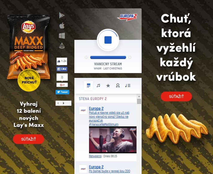 S vianočným songom rádio Europa 2 spustilo i vianočný stream, ktorý spojilo s reklamnou kampaňou a súťažou značky Lays Maxx.
