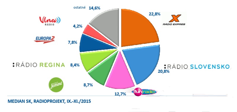„V meranom období dosiahli rozhlasové stanice v parametri podiel na trhu (share) nasledovné výsledky: Prehľad otvára Rádio Express 22,8% podielom na trhu, Rádio Slovensko má 20,8% a s 12,7% podielom sa na treťom mieste umiestnilo Fun rádio. Na štvrtom mieste sa umiestnilo Rádio Jemné s 8,7% a na piatom Rádio Regina s 8,4% podielom na trhu. Šieste miesto obsadilo Rádio Europa2 s podielom 7,8% a siedme Rádio Vlna so 4,2%. Ostatné rozhlasové stanice držia podiel 14,6% z trhu,“ ako uviedla agentúra Median SK k aktuálnym výsledkom prieskumu Radioprojekt.