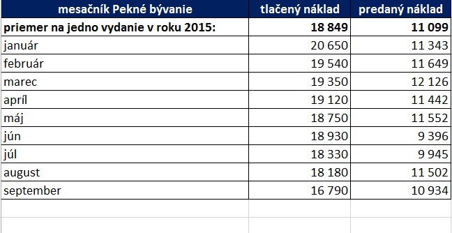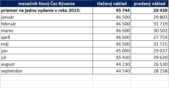 Podľa auditu nákladu združenia Audit Bureau of Circulations (ABC SR), priemerný predaný náklad v roku 2015 bol na jedno vydanie viac ako 11 tisíc výtlačkov pri priemernom tlačenom náklade necelých zhruba 19 tisíc kusov.