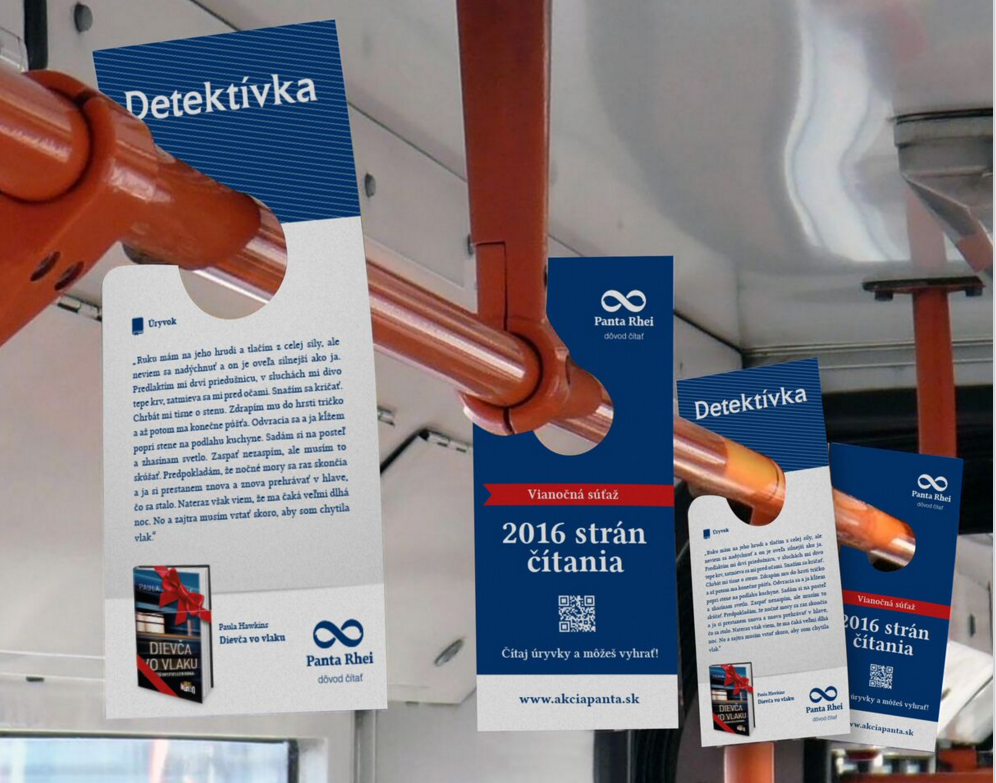 Sieť kníhkupectiev Panta Rhei kampaňou nabáda čitateľov, aby si vzali do rúk knihu. Aktuálne pokračovanie kampane sa nesie vo vianočnom duchu a ponúka čitateľom úryvky kníh s možnosťou súťažiť a vyhrať až 2016 strán knižiek.