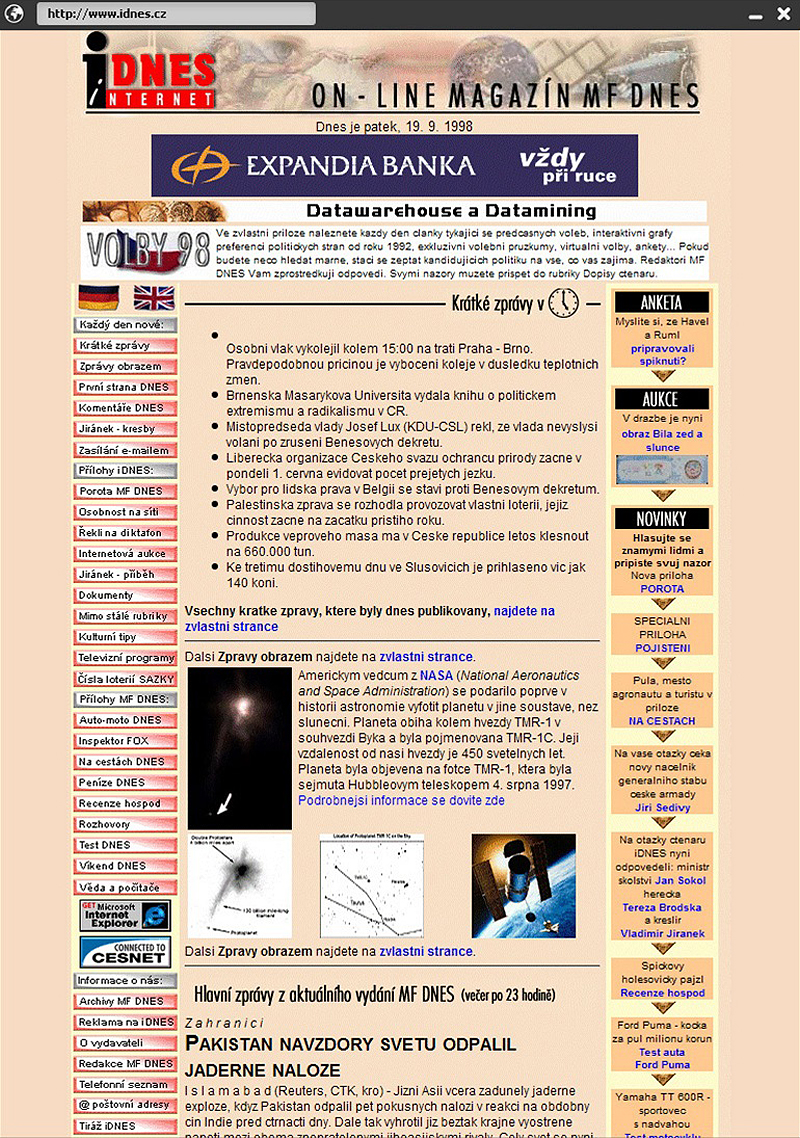 Pozrite ako sa dizajn webu iDnes.cz zmenil za tie roky: