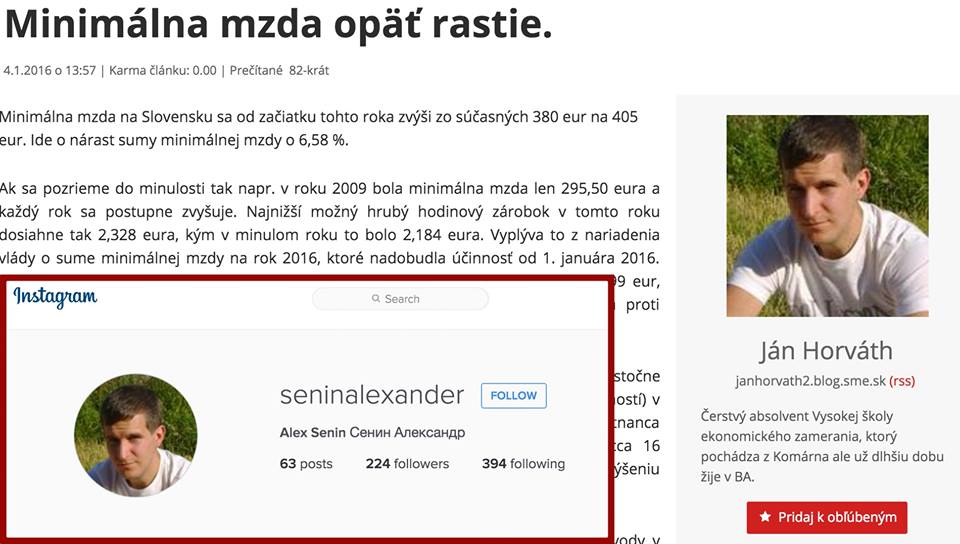 Užívateľ s vymyslenou identitou pod menom Ján Horváth s profilovou fotografiou stiahnutou zo sociálnej siete Instagram, ale aj profil s menom Janko Biely, obaja písali na blogu SME.sk texty v prospech súčasnej vládnej garnitúry. Administrátori SME.sk ich profil promptne zablokovali.