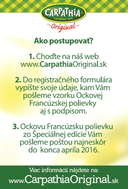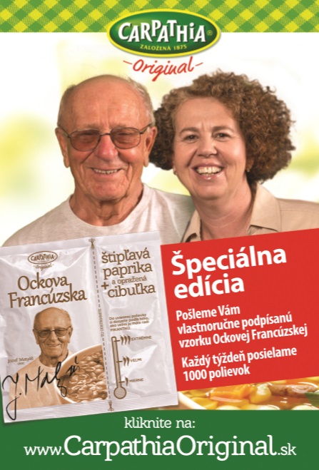 „Tento rok sme sa rozhodli vrátiť ku koreňom a predstaviť ďalšiu časť tohto príbehu – prezradiť malé rodinné tajomstvo rodiny Matyášovej. Manžel pani Matyášovej totiž Francúzsku polievku v pôvodnom zložení nejedával. Pridával si do nej smaženú cibuľku a čili papričky. Preto sme pripravili limitovanú exkluzívnu edíciu 5000 Ockových francúzskych polievok. Polievka sa skladá z dvoch vreciek. V prvom je klasická Francúzska s extra mäsom, v druhom vrecku je smažená cibuľka a štipľavá paprika. Každý si tak môže polievku dochutiť podľa svojej chuti. Polievka je dostupná v obmedzenom množstve 200 polievok na deň na internetovej stránke www.carpathiaoriginal.sk počas celého februára. Polievka nie je vo voľnom predaji,“ povedal Róbert Kičina, Corporate Affairs Manager spoločnosti Nestlé Slovensko s.r.o.