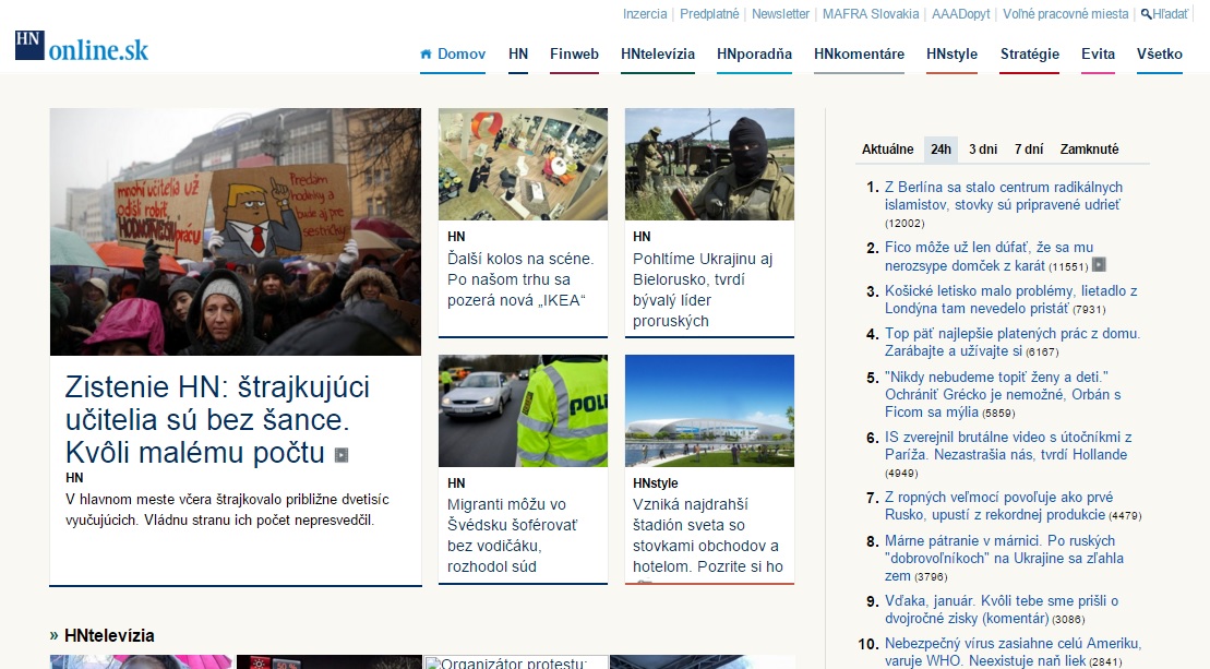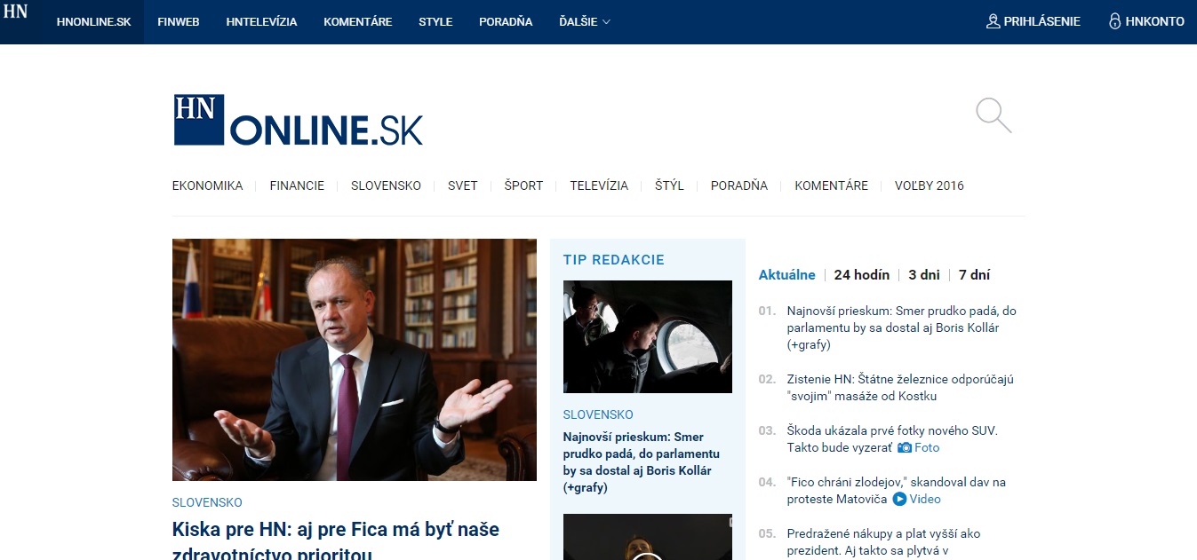 Web HNonline.sk po redizajne 18. februára 2016: